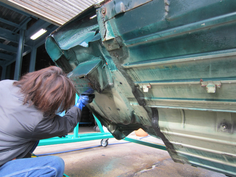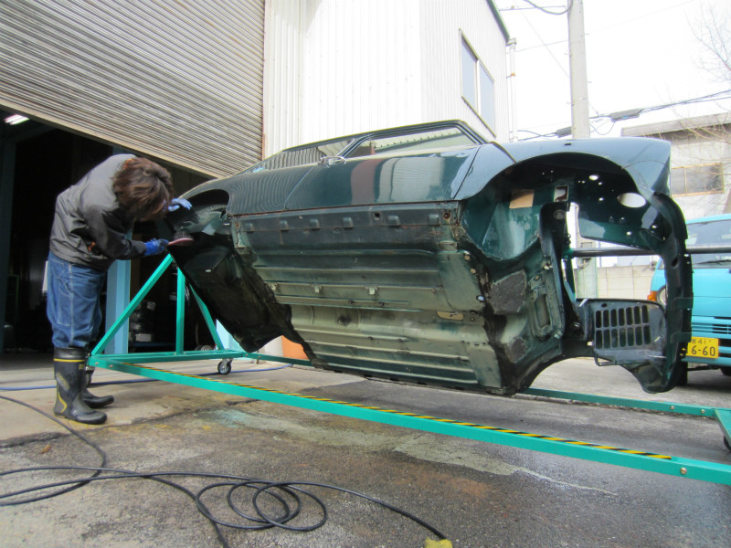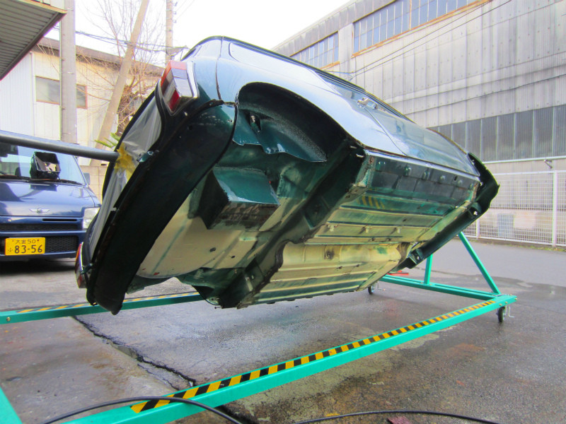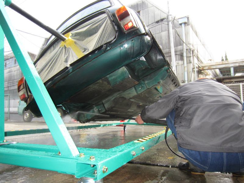 ボディー裏側の作業では、車体を専用ジグを使用して回転させる事により より丁寧な作業を可能にしています。