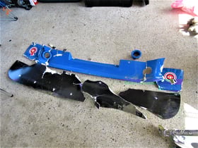 ダンロップ・コーナーにアクセル全開で突っ込み、アウト側の縁石に乗り上げ・・・